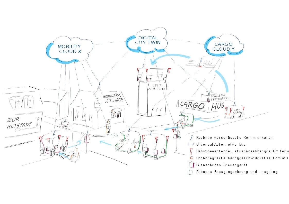 In AUTOtech.agil soll die in UNICARagil entwickelte diensteorientierte Softwarearchitektur ("Automotive Service-oriented Software Architecture", ASOA) über die Systemgrenze des Fahrzeugs hinaus erweitert werden. Dies ermöglicht die Verteilung von Intelligenz durch Orchestrierung von Diensten innerhalb und außerhalb des Fahrzeugs. Zu den fahrzeugexternen Komponenten gehören infrastrukturbasierte Sensoren wie Road Side Units (RSUs) sowie Leitzentralen und Clouds.Die Erkennung, Diagnose und Vorhersage von Fehlern ermöglicht in Kombination mit einer Over-the-Air-Updatefähigkeit kurze Innovationszyklen durch agile Updates und Upgrades. Das heterogene Gesamtsystem kann so jederzeit auf einem sicheren Niveau gehalten werden.Neuromorphe Hard- und Software ermöglichen maschinelles Lernen und nachhaltige Umgebungswahrnehmung auf einem neuen Niveau der Energieeffizienz.Entwurf, Validierung, Nutzung und Wartung diensteorientierter E/E-Architekturen werden durch die Schaffung und Bereitstellung einer Entwicklungsplattform mit entsprechenden Software-Tools vereinfacht.Als universelle, skalierbare und echtzeitfähige Schnittstelle erhöht der Universal Automotive Bus (UAB) die Interoperabilität und reduziert die Komplexität der Systemintegration.Lernende vernetzte Verkehrsintelligenz ermöglicht es, die Sicherheit und Effizienz des Straßenverkehrs zu erhöhen. Leitzentralen können auf einen digitalen Live-Zwilling des aktuellen Verkehrs zurückgreifen. Durch die Vernetzung kann der Entscheidungsprozess in automatisierten Fahrzeugen um kooperative Formen der Entscheidungsfindung erweitert werden.Eine robuste Fahrzeugautomatisierung auf Basis eines modularen Baukastens von Funktionsmodulen berücksichtigt Unsicherheiten, repräsentiert in Qualitätsvektoren, entlang der gesamten Wirkungskette – von der Umfeldwahrnehmung bis zur probabilistischen Trajektorienplanung und -regelung.Die projektweite Dokumentation der Sicherheitsaktivitäten im Zusammenspiel aller Komponenten und Module dient der Beschreibung von Unsicherheiten und dem Dialog über erreichbare Sicherheitsniveaus. Ein modularer Homologationsprozess soll Software-Updates im laufenden Betrieb ermöglichen.Eine Public-Key-Infrastruktur (PKI) sorgt für sicheren Datenaustausch. Basierend auf den probabilistischen Funktionsmodulen für die Fahrzeugautomatisierung wird ein Monitoring-Framework zur ganzheitlichen Selbstwahrnehmung mittels Qualitätsbewertung geschaffen und eine Fähigkeitenbewertung auf Gesamtsystemebene ermöglicht.Das Projekt befindet sich zum jetzigen Zeitpunkt in der Halbzeit. Eine Abschlusspräsentation von AUTOtech.agil ist geplant für September 2025 in Hamburg. Dort sollen die erzielten Ergebnisse unter anderem in verschiedenen Demos präsentiert werden und das Mobilitätssystem der Zukunft den Besuchern erlebbar gemacht werden.