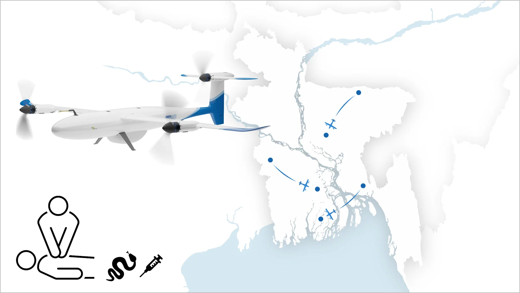 Für den Einsatz in Bangladesch wird ein in Aachen entwickeltes, vollständig automatisiertes unbemanntes Kippflügelflugzeug verwendet. Das Flugsystem besitzt die Möglichkeit, seine Tragfläche zu kippen, sodass ein senkrechtes Starten und Landen sowie ein energieeffizienter Flächenflug möglich sind. Im Horizontalflug ist die Tragfläche wie bei einem konventionellen Flugzeug angeordnet und das Flugsystem kann Flutopfer in abgelegenen Gebieten auch über große Distanzen erreichen. Um über den Flutopfern schweben zu können und die Nutzlast mit Notfallmedikamenten an der gewünschten Stelle abzusetzen, wird die Tragfläche nach oben gekippt. Die in dem Projekt benötigten Anforderungen an das Flugsystem können daher mit dem ausgewählten Kippflügelflugzeug und dessen Anwendungsbereich gänzlich realisiert werden.