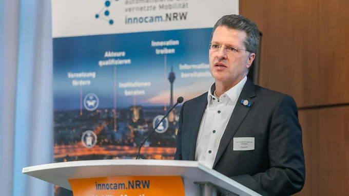 Univ.-Prof. Dr.-Ing. Lutz Eckstein, wissenschaftlicher Leiter von innocam.NRW, Vorstandsvorsitzender des Future Mobility Partnership e.V. und Leiter des Instituts für Kraftfahrzeuge ika der Rheinisch-Westfälischen Technischen Hochschule (RWTH) Aachen, brachte die Relevanz der Veranstaltung auf den Punkt: