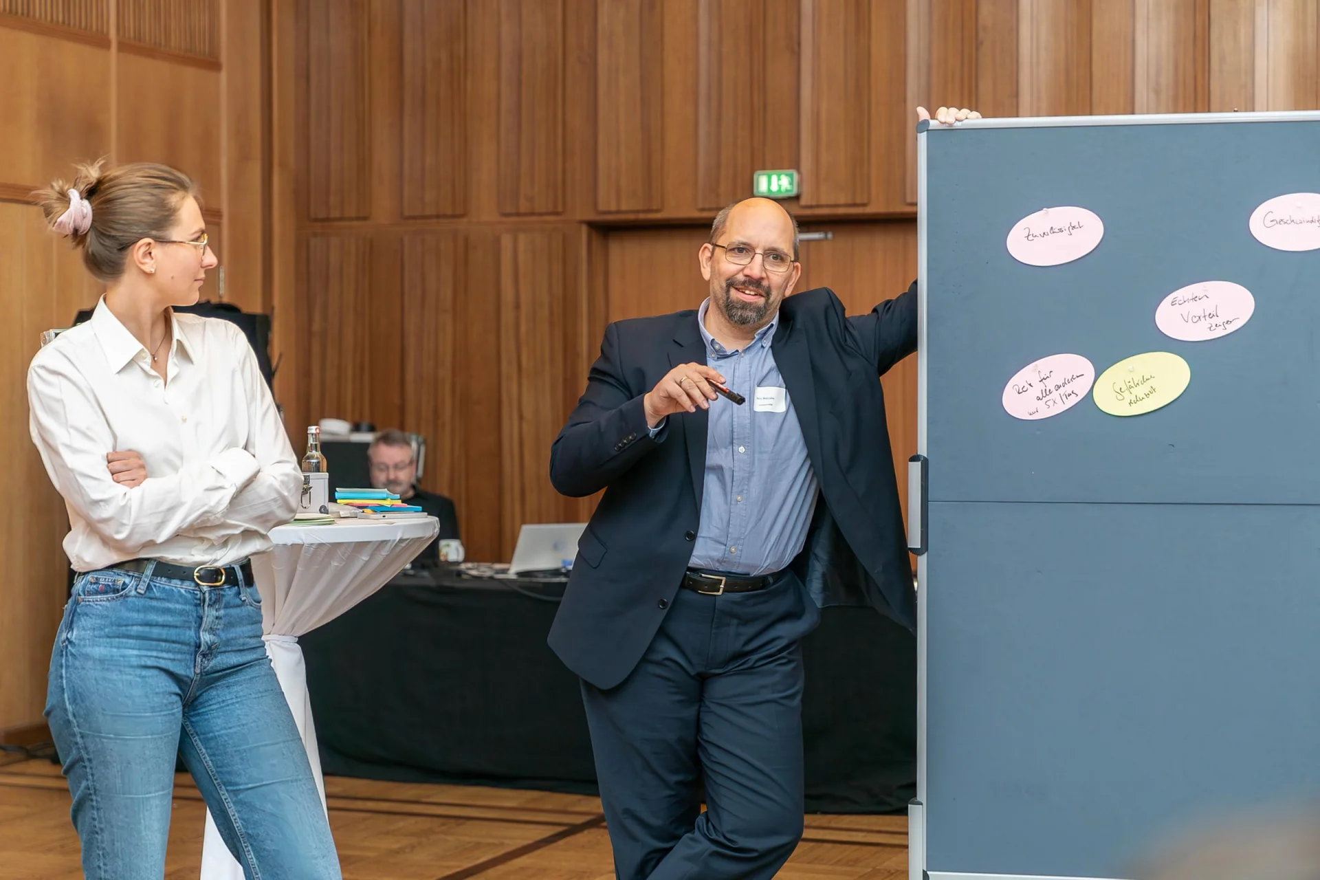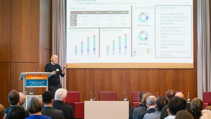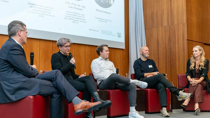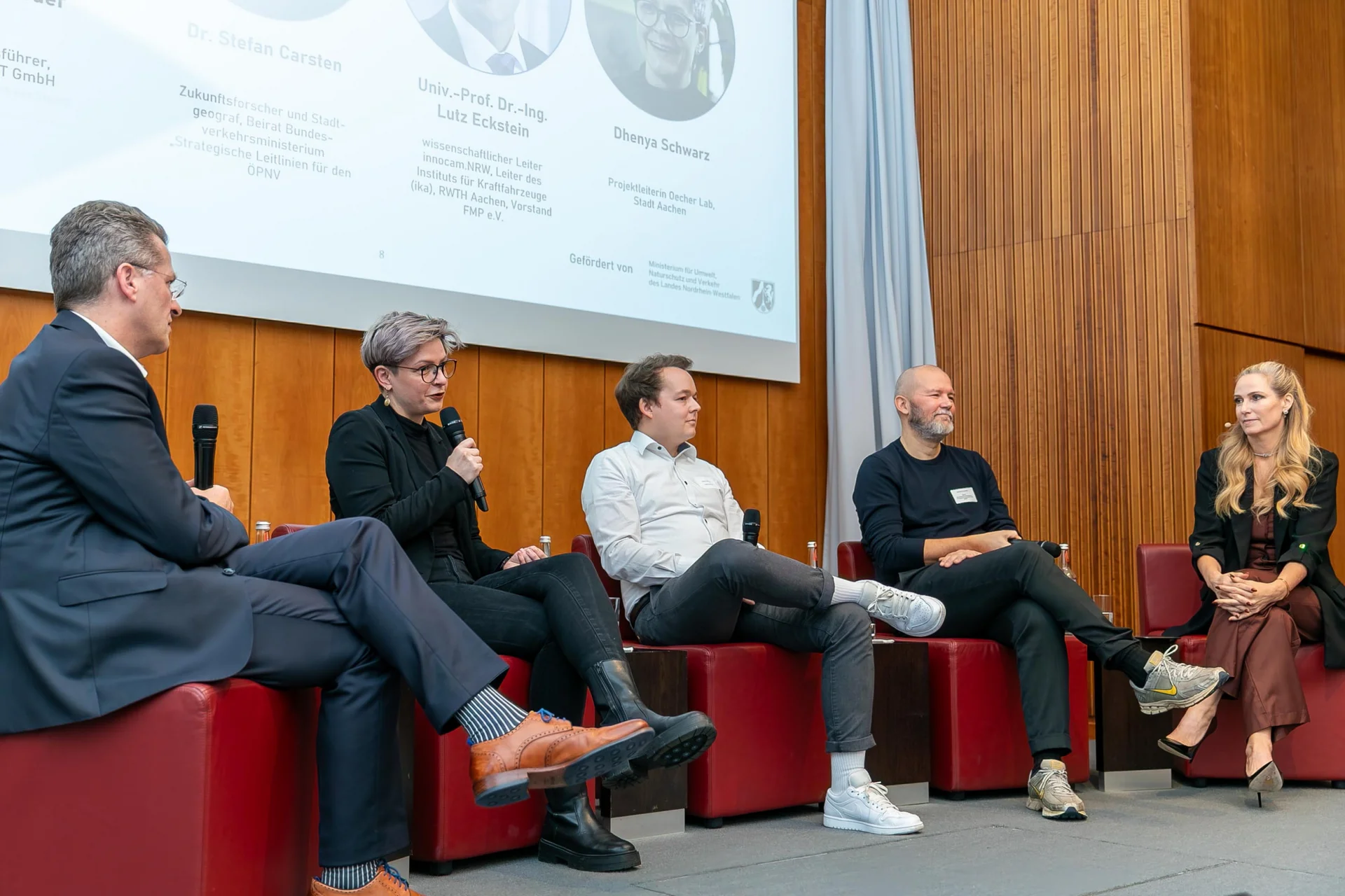 So unterstrichen Henric Breuer, Geschäftsführer von 4traffic SET GmbH, und Univ.-Prof. Dr.-Ing. Lutz Eckstein, wissenschaftlicher Leiter von innocam.NRW, die Bedeutung verkehrsträgerübergreifender Datenverfügbarkeit – sowohl aus technischer als auch ökonomischer Perspektive. Stefan Carsten, Zukunftsforscher, Stadtgeograf und auch Keynote Speaker beim Mobility Meeting, sprach sich für die Integration der Angebote von konventionellem ÖPNV und Sharing-Lösungen aus. Jedoch dürfe die ganzheitliche Betrachtung nicht zum Stillstand bei einem System führen, weil es auf das andere warte. Mit Blick auf die Gestaltung der Zukunft der Mobilität verortetet das Podium insgesamt die Schwierigkeiten nicht bei der Innovationskraft, sondern bei der Umsetzung. Angesprochen auf die Frage, was es denn hierfür brauche, antwortete Dhenya Schwarz, Projektleiterin des Oecher Labs der Stadt Aachen: „Mut, politischen Willen und Menschen, die vorangehen“. Auch die Herausforderungen in diesem Bereich wurden im Zuge der Workshops noch ausführlicher in Kleingruppen erörtert.