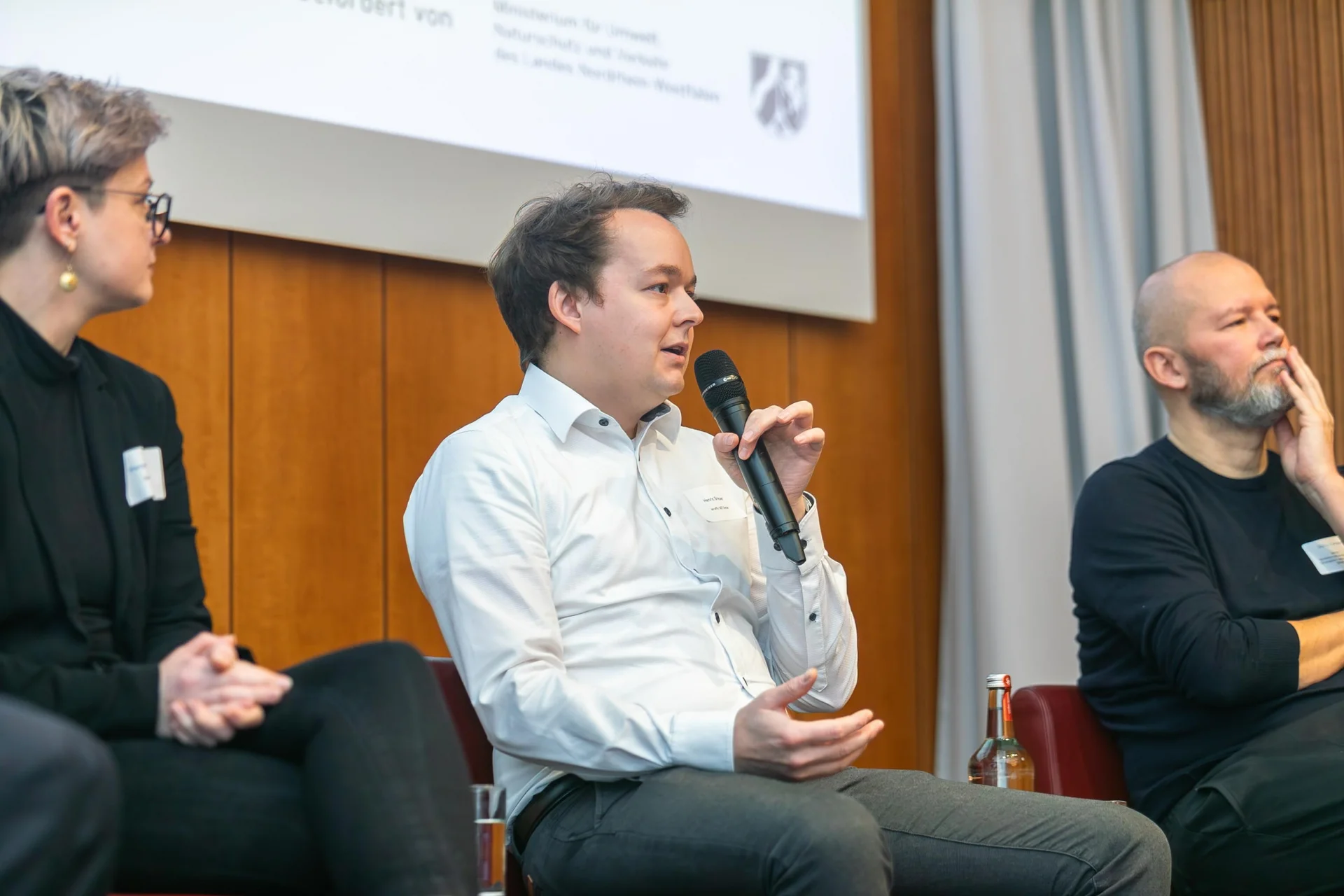 Nach der Eröffnung durch Udo Sieverding, Leiter der Abteilung Mobilität der Zukunft, Radverkehr und ÖPNV im Ministerium für Umwelt, Naturschutz und Verkehr des Landes Nordrhein-Westfalen, widmeten sich unterschiedliche Impulsvorträge dem Zukunftsbild von automatisierter und vernetzter Mobilität. Davon angeregt diskutierte anschließend ein breit aufgestelltes Panel die Frage „Wie gelingt der Dreiklang Mensch – Innovation – Kommune“ und wie das skizzierte Zukunftsbild gemeinsam erreicht werden könnte. Dabei kamen bereits viele Themen zur Sprache, die anschließend am Nachmittag in den Workshops ausführlicher behandelt wurden.