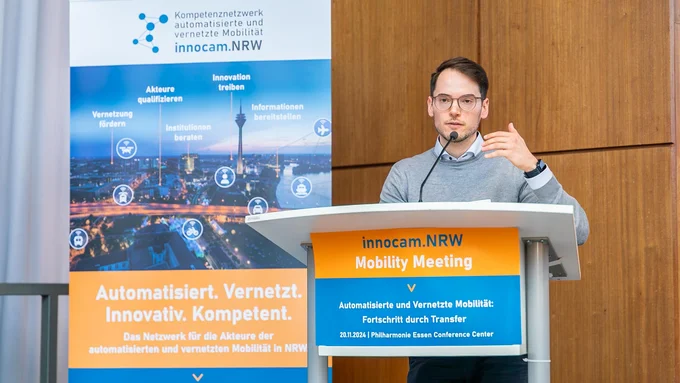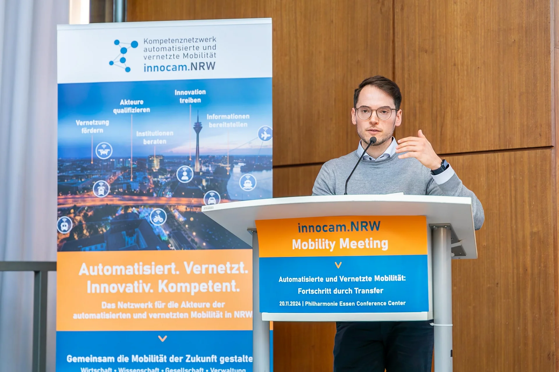 Am 20.11.2024 fand die große Jahrestagung des innocam.NRW Kompetenznetzwerks, das Mobility Meeting im Conference Center der Philharmonie Essen statt. Die Veranstaltung trug den Titel „Automatisierte und Vernetzte Mobilität: Fortschritt durch Transfer”. Knapp 80 Gäste kamen vor Ort zusammen, um mit führenden Expertinnen und Experten ins Gespräch über neue Entwicklungen automatisierter und vernetzter Mobilität am Innovationsstandort NRW zu kommen.