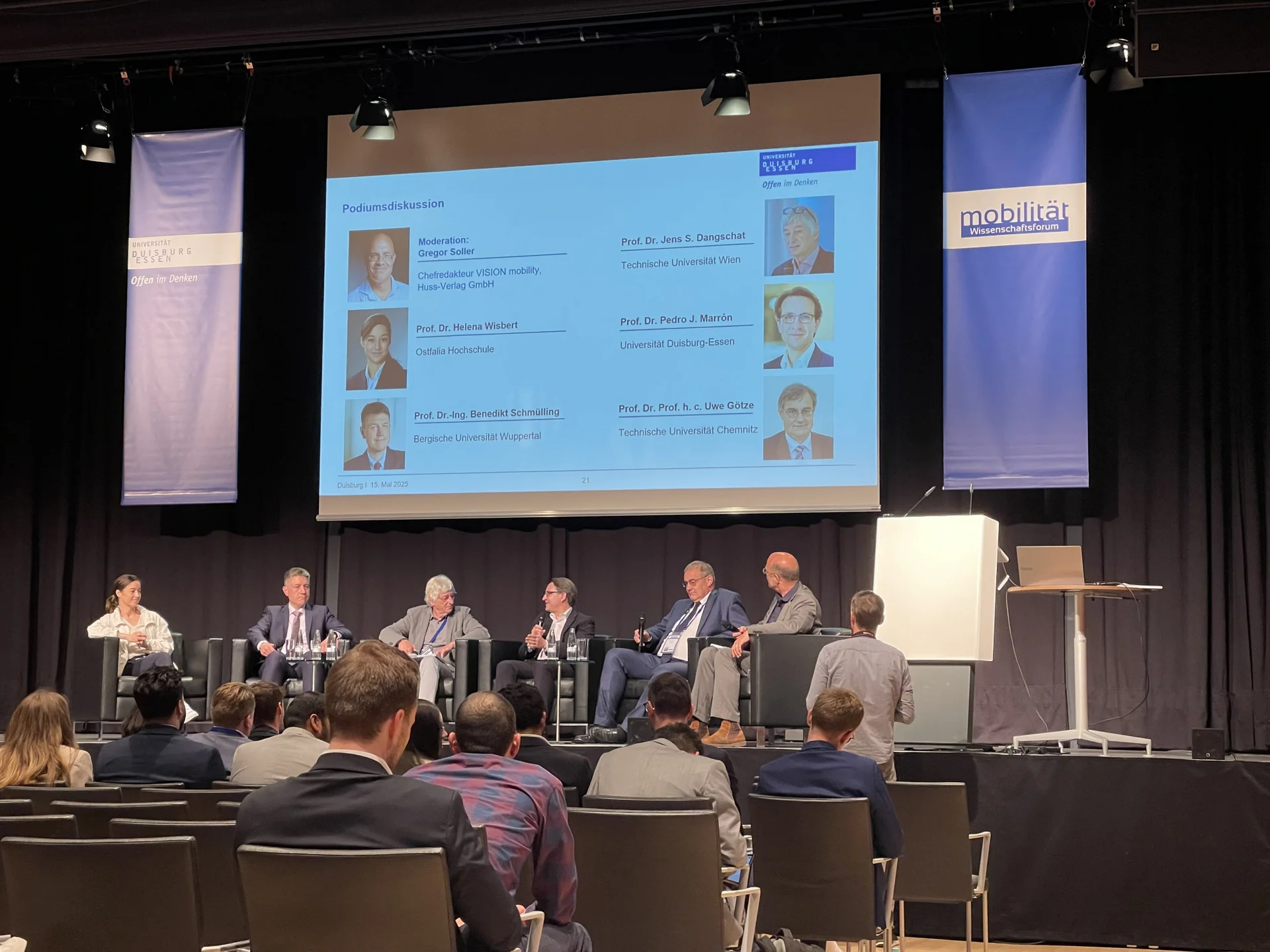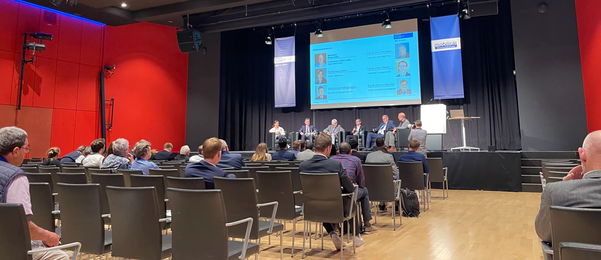 Am 15. Mai 2025 fand das 17. Wissenschaftsforum Mobilität erneut im CityPalais Duisburg statt. Seit 2009 bietet das Forum eine Plattform zum Austausch von Wissenschaft, Wirtschaft und Politik. Auch in diesem Jahr trafen sich die etwa 400 Teilnehmer, um sich unter dem Leitthema „Solving Conflicts on the Way to Sustainable Mobility“ dazu auszutauschen, wie nachhaltige Mobilität gestaltet werden kann und wie dem Konflikt aus ökonomischen, ökologischen und sozialen Zielsetzungen begegnet werden kann.