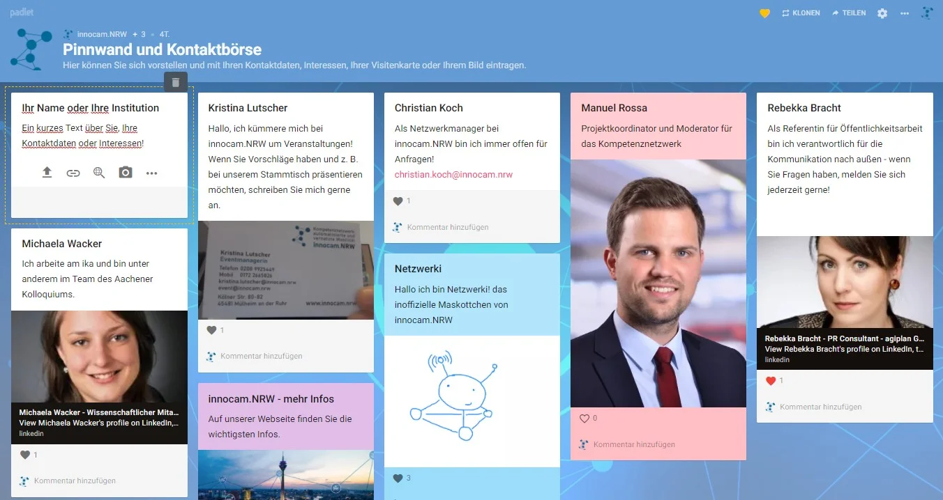 Ein Aspekt, der bei Onlineveranstaltungen wegfällt, sind informelle Gespräche: egal ob in der Kaffeepause, mit dem Sitznachbarn oder nach dem Vortrag mit den Speakern. Um trotzdem nicht auf den menschlichen Austausch verzichten zu müssen, erreichen motivierte Teilnehmer über einen Link die virtuelle innocam.STAMMTISCH-Bar auf wonder– eine Video-Chat-Plattform, in der man sich ganz individuell zu kleinen Gesprächsgruppen zusammenfinden kann. Auch die Struktur ist etwas anders als bei klassischen Konferenzformaten.
