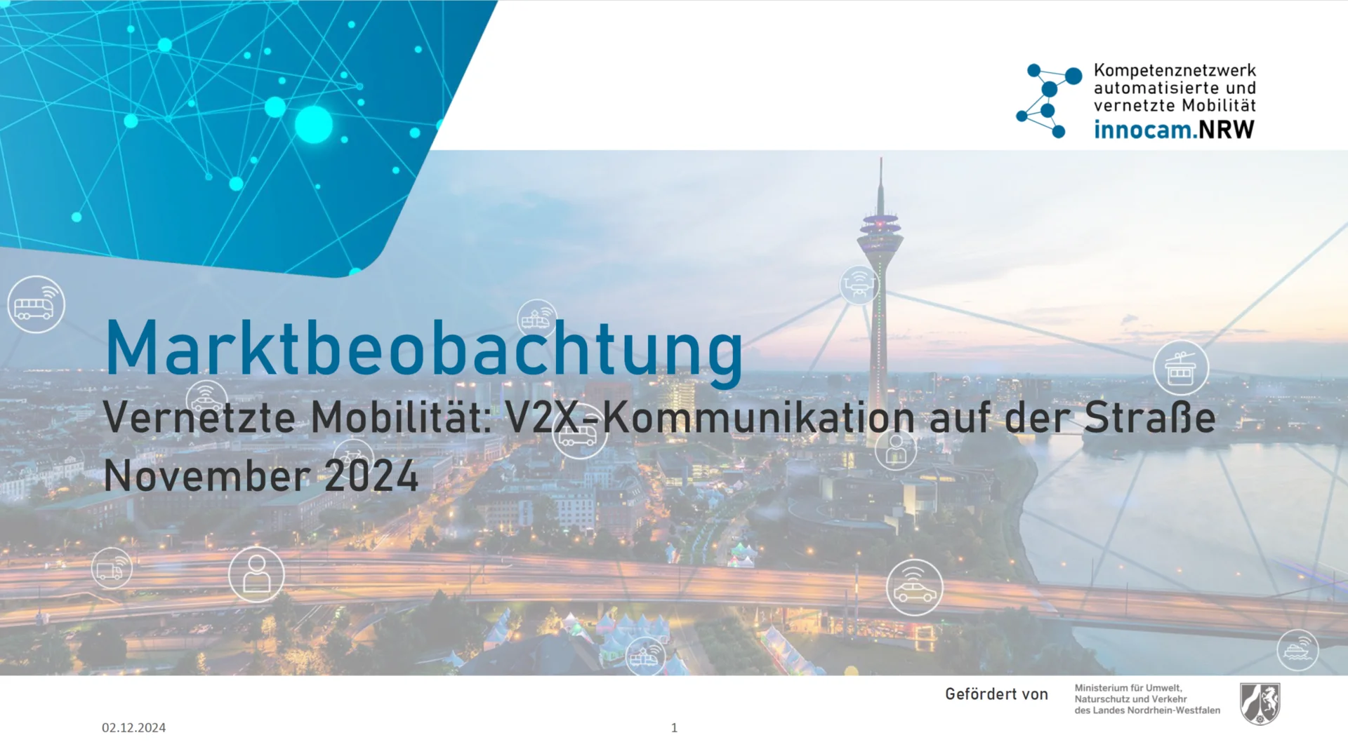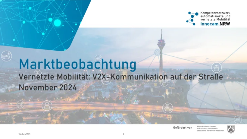 Die Vernetzung der Mobilität auf der Straße bietet viel Potential, den Verkehr sicherer und effizienter zu gestalten. Die Implementierung flächendeckender Vernetzung stellt die beteiligten Akteure jedoch vor Herausforderungen, die gemeinsam gelöst werden müssen. Das Kompetenz-netzwerk innocam.NRW bringt diese Akteure zusammen.